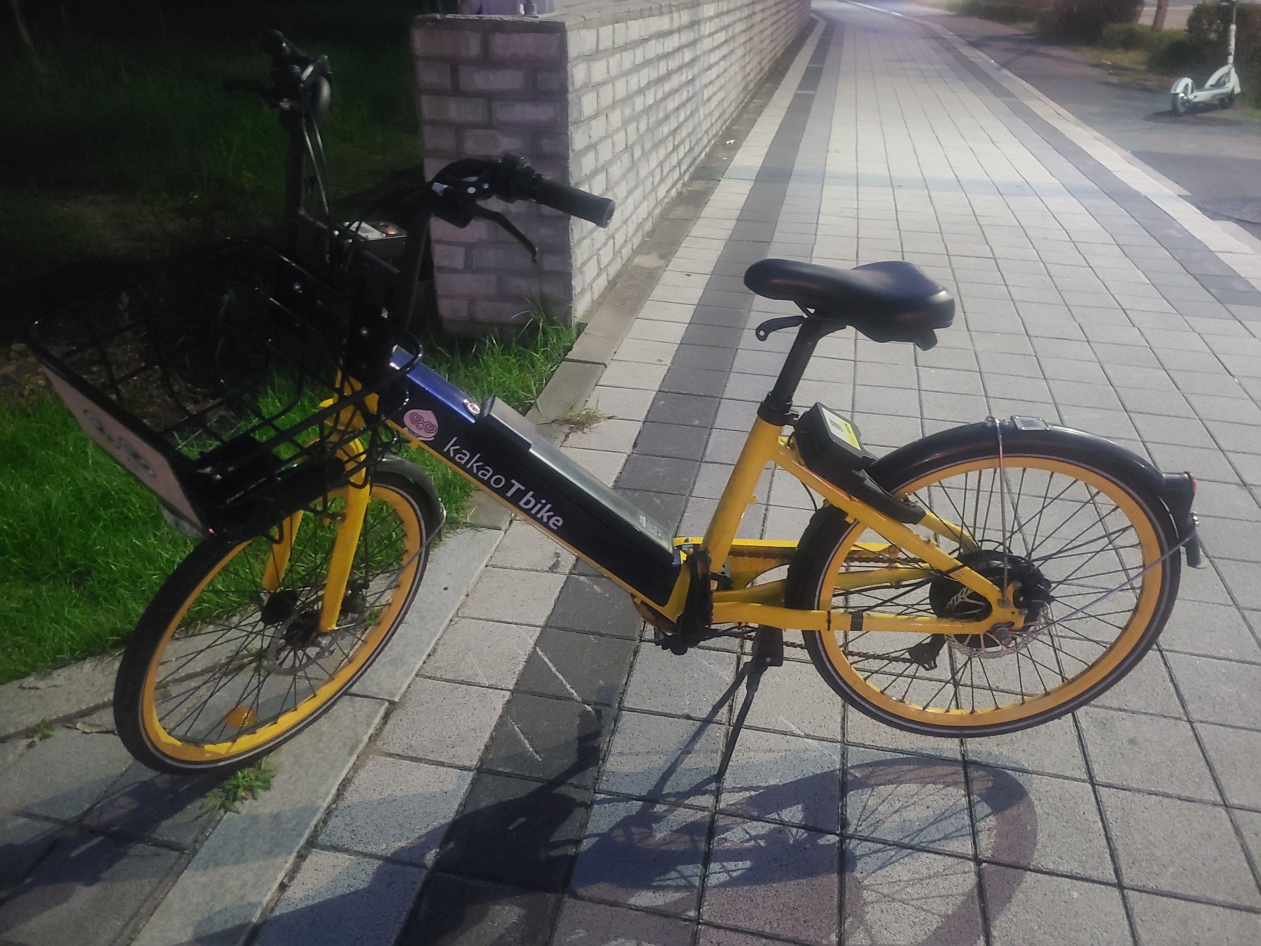 퇴근질에 길거리에서 눈에 띄는 자전거가 주차되어있어서 봤더니 바로 아래 사진에 있는 카카오 공유 자전거 더라고요.