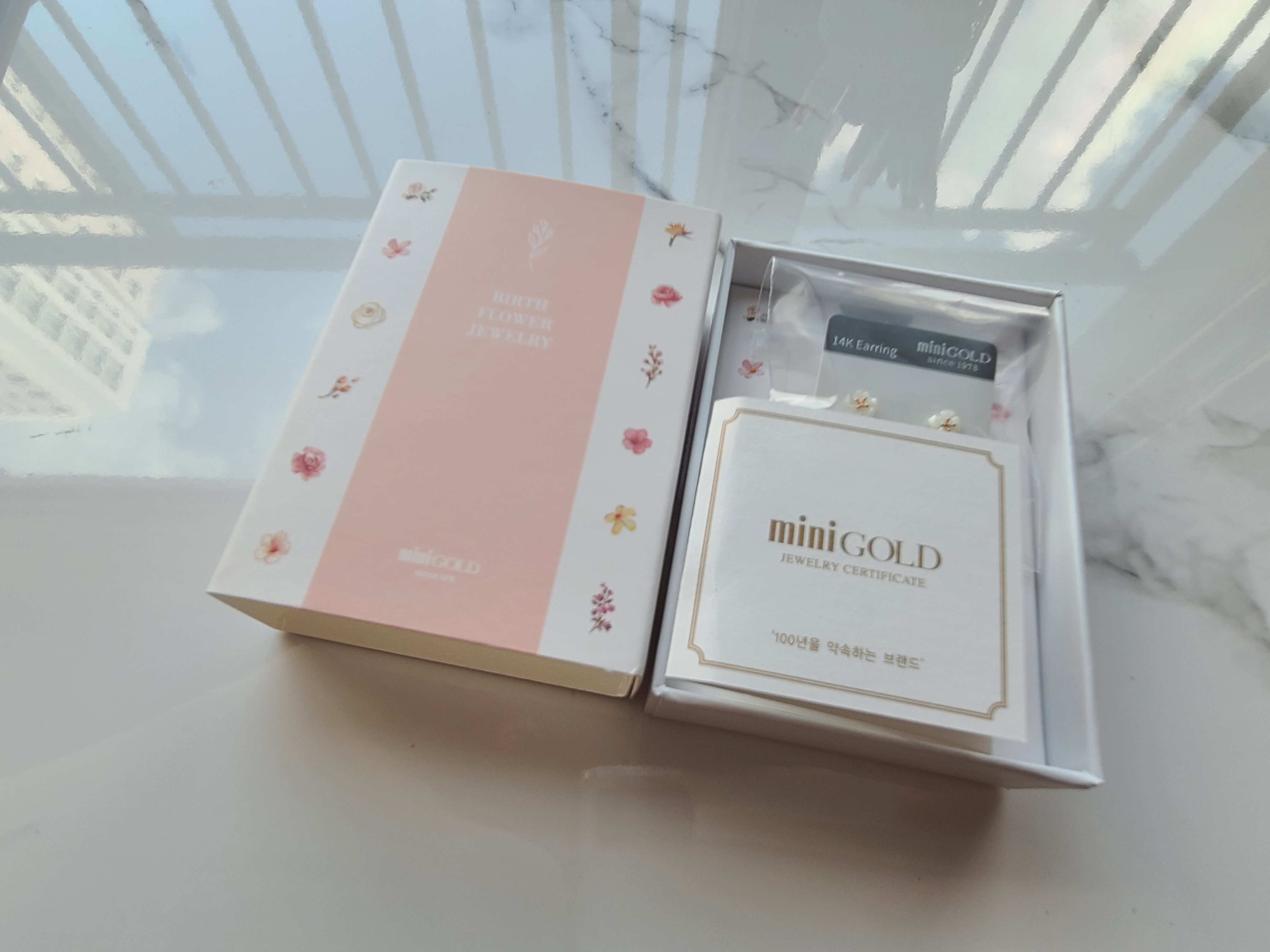귀걸이 포장을 열면 미니골드 인증서와 함께 귀걸이가 포장되어 있어요. 저는 8월 탄생화가 능소화 인지 이번에 처음 알았는데요. 능소화의 꽃말은 여성, 명예, 이름을 날림 이라고 해요. 제 이름 날리는 그날까지 열심히 귀에 걸고 다녀야겠어요. ㅋㅋㅋ